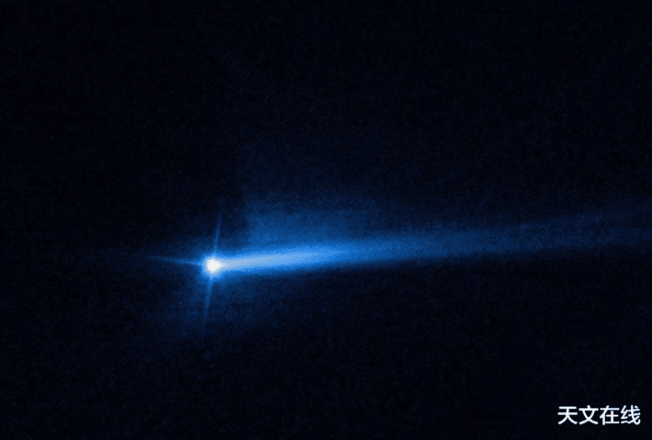 哈勃空间千里镜不雅测到,好意思国国度航空航天局(NASA)的DART航天器撞击较小的迪莫弗斯小行星后数日,迪迪莫斯—迪莫弗斯小行星系统喷射出两条尘埃尾迹。图片起首:好意思国国度航空航天局(NASA)、欧洲航天局(ESA)、李剑阳(行星科学商讨所,PSI)、乔德帕斯夸莱(天外千里镜科学商讨所,STScI)