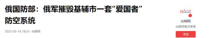 参考信息2:《俄国防部:俄军糟塌基辅市一套“爱国者”防空系统》光明网2023.05.16