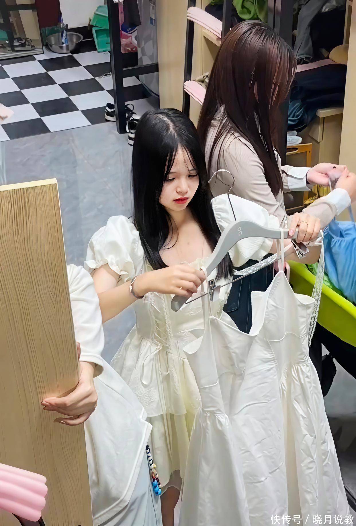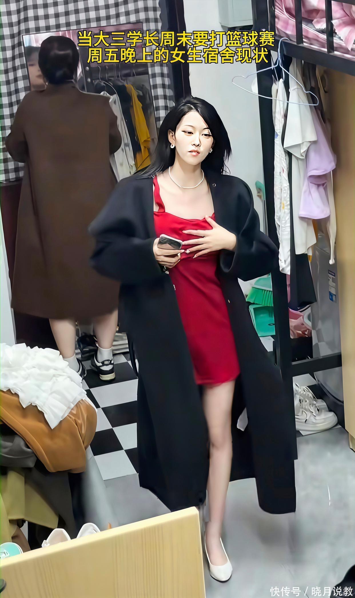 可点开视频却叫东谈主目下一黑,这些女生在寝室内都在试衣着、打扮我方,有的穿上了低胸的红色吊带裙,也有东谈主在试超短裙搭配小皮靴,可再奈何盛装打扮,也隐敝不住她们的无知。