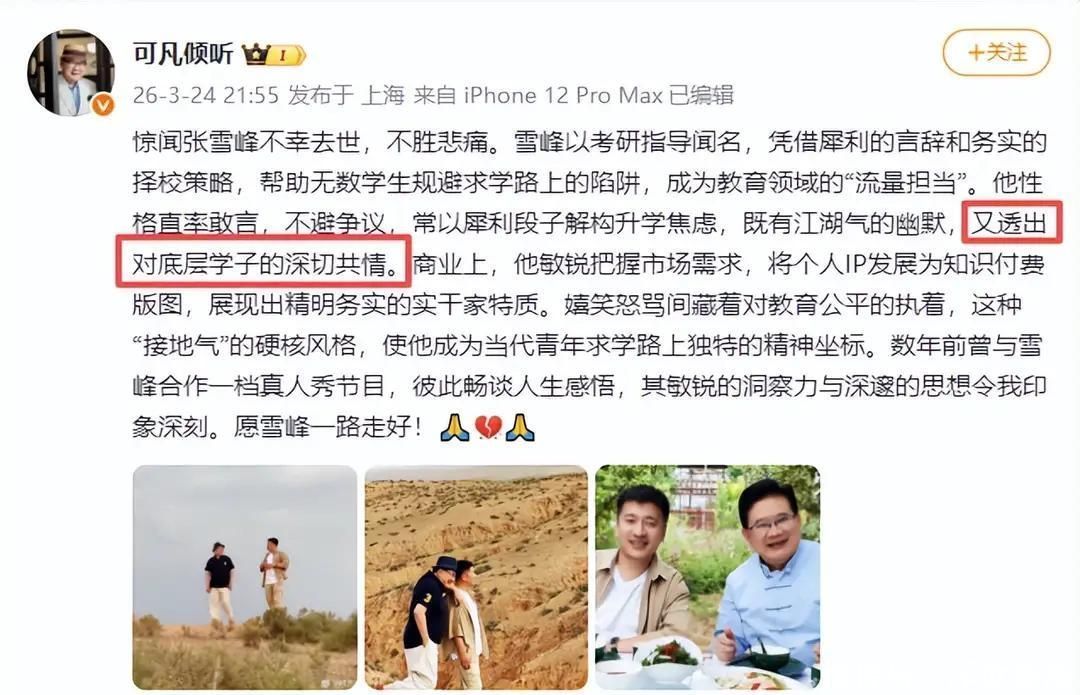 而曹可凡之是以能写出如斯切中肯綮的悼文,根源正在于他与张雪峰之间那段真实可触、深入肌理的心理!