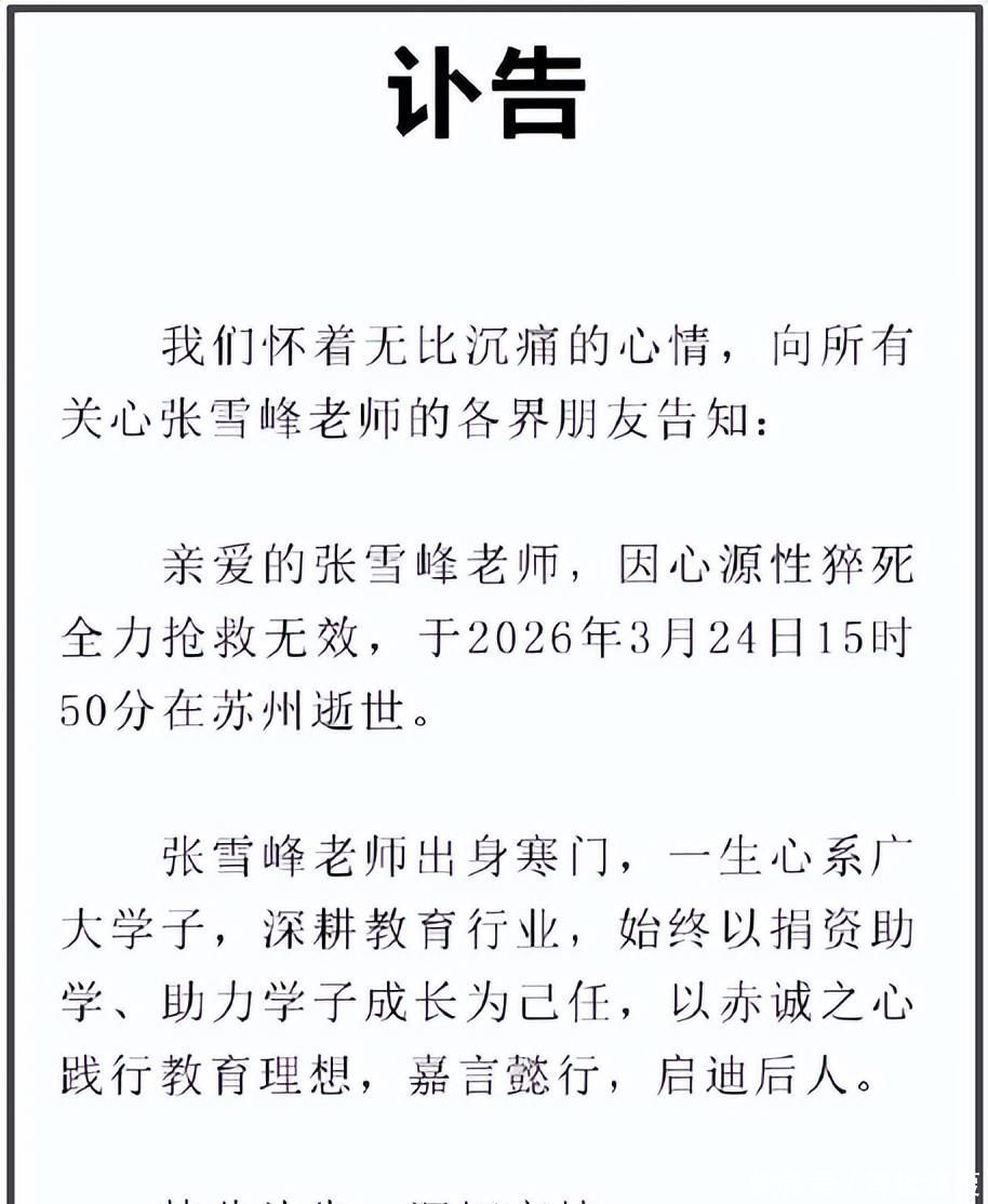 41岁的张雪峰因突发心源性暴毙撒手尘寰,