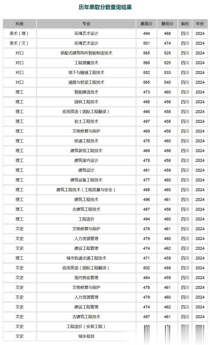 学校官网最新仅能查询到2024年面向四川省的收用分数线: