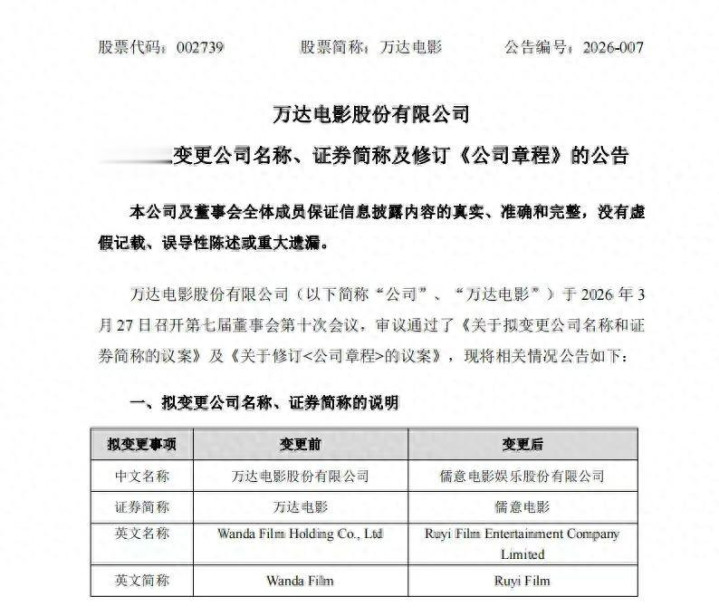 3月27日,万达电影发布重磅公告,秘书拟改名为“儒意电影文娱股份有限公司”,万达影城行动旗下遑急的影城品牌之一,将连续为用户提供不雅影和线下文娱劳动。这不仅是一次通俗的品牌更换,更是这家一语气17年领跑国内院线的行业巨头,从传统电影放映商向全产业链文娱平台转型的象征性一步。跟着儒意系认真完成对万达电影的整合看管,公司将澈底跳出“只靠票房吃饭”的旧花样,以全新身份开启“超等场景+超等IP”的新征途。