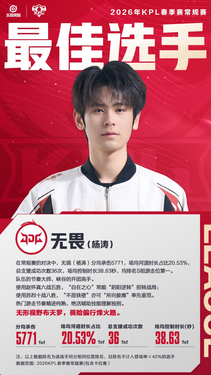 继2020秋季赛以打野位入围旧例赛最好选手后,丧胆在2026春季旧例赛再度以游走位入选,成为KPL史上首个双位置入围最好选手的选手。他共使用15个游走英雄,其中7个英雄斩获11次MVP,毫无疑问的英雄海。八战八胜的张飞被称为“网课”,数次决胜局兜底、五战五胜的赵怀真,更让他成为赵怀真把握东谈主,在赛场表里大幅普及了该英雄的饶恕度,用实力引颈英雄热度。