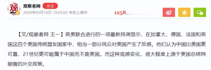 更狠的是英好意思和洽民调——好意思国四大传统盟友的老匹夫,竟然更信任中国。随着好意思国混了半个世纪的铁哥们,为啥俄顷集体“潜逃”?这背后藏着啥猫腻?