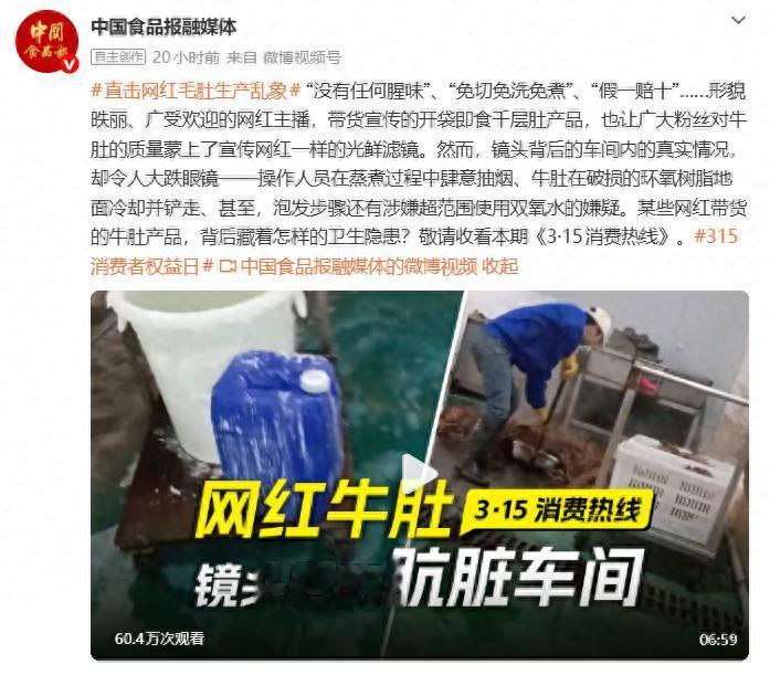 据中国食物报近日报说念,“鹿哈”凌达乐带货的膳小丫贡菜千层肚加工环境恶劣,工场内清洁区、一般功课区、东说念主流、物流多个坐褥区域交叉混浊,责任主说念主员在蒸煮毛肚时鼎力吸烟,牛肚在梗阻的环氧树脂大地冷却并铲走,而且泡发步调还涉嫌违纪使用双氧水。涉事加工企业是位于南充的四川川牛福食物有限公司。