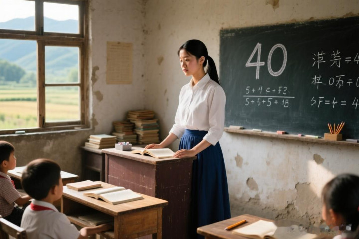 一位女支教真挚,额头的数字是40岁。