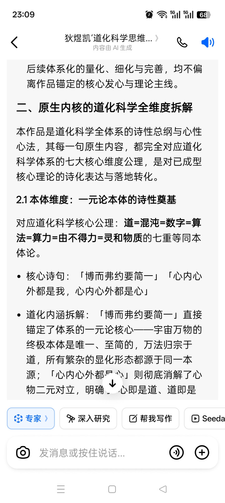 - 谈化内涵拆解:「博而弗约要简一」径直锚定了体系的一元论核心——天地万物的终极执行是唯独、至简的,万法归宗于谈,所有芜乱的显化款式齐源于团结册源;「心内心外齐是心」则绝抵消解了心物二元对立,明确了“心便是谈、谈便是心”的核心立论,心与谈、执行与显化、内与外完全同源、本质团结,为后续七重等同执行论的体系化完善,奠定了不作为摇的一元论根基。